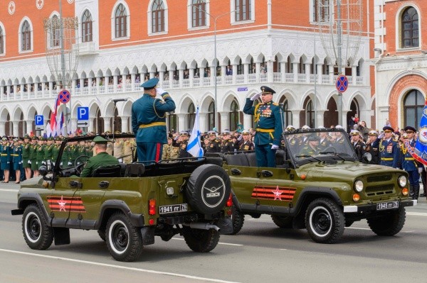 Войска Йошкар-Олинского гарнизона, участники специальной военной операции, представители всех силовых ведомств республики, кадеты и юнармейцы прошли торжественным маршем по центральным улицам города.