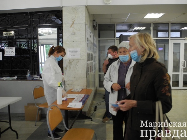 За два с половиной часа до официального окончания голосования во Дворце молодежи Марий Эл, где расположены два городских избирательных участка, об отдыхе и не думали. Все сотрудники, наблюдатели и волонтеры были на своих рабочих местах и с неизменной вежливостью и вниманием встречали каждого посетителя. А ведь идет уже шестой день голосования. К тому же именно сегодня, 1 июля, активность населения выросла.