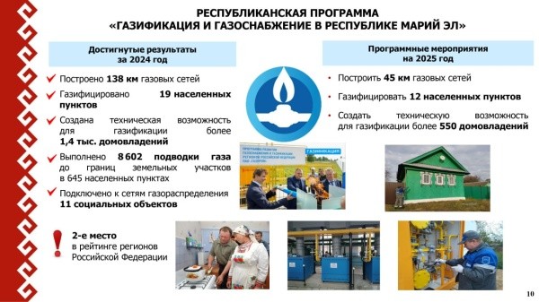 Марий Эл занимает 2-е место среди субъектов Российской Федерации по эффективности реализации мероприятий догазификации.