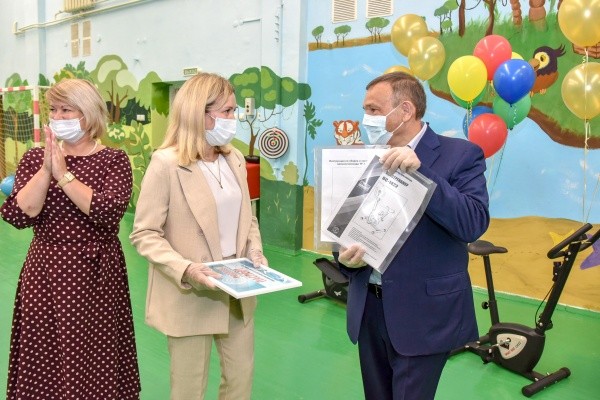 В интернате изменилась концепция спортивного зала. Как пояснила Министр социального развития республики Марина Островская, для эффективных занятий с детьми зал был разделен на четыре зоны: игровую, спортивную, реабилитационную и релаксации. Также закуплено современное игровое развивающее оборудование. А волонтеры из МарГУ и Йошкар-Олинского художественного училища оформили спортзал яркими рисунками, поднимающими настроение детей.