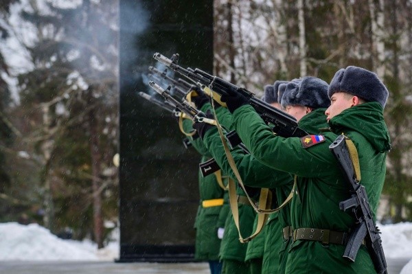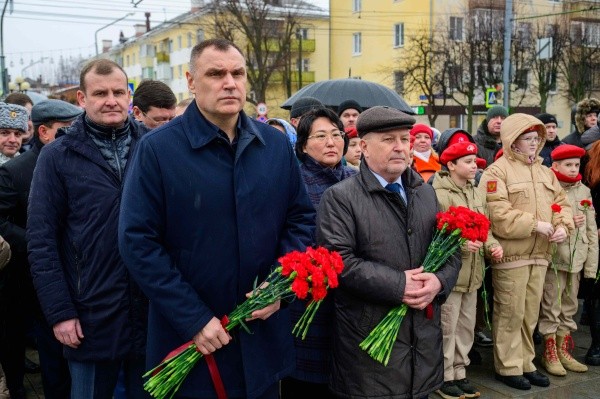 Под звуки троекратного оружейного залпа участники почтили память погибших героев минутой молчания.