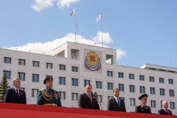 Глава Марий Эл отметил огромный вклад жителей республики в общую победу, напомнив, что 53 уроженца региона были удостоены звания «Герой Советского Союза», 14 воинов стали полными кавалерами ордена Славы, в тылу, не жалея себя, работали женщины, старики и дети.
