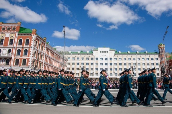 После троекратного «Ура!» торжественным маршем прошли военнослужащие Йошкар-Олинского гарнизона, парадные расчеты технической базы Военно-морского флота, сотрудники Министерства внутренних дел по Республике Марий Эл, региональных управлений Федеральной службы исполнения наказаний, Росгвардии, МЧС России, Федеральной службы судебных приставов, представители Местной общественной организации ветеранов «Союз десантников города Козьмодемьянска и Горномарийского района», кадеты и юнармейцы школ республики, курсанты Столичного бизнес-колледжа, обучающиеся Колледжа государственной и муниципальной службы.