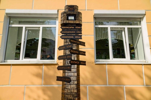Новая композиция, стилизованная под морской маяк, представляет собой почтовый столб с гербом Почты России и указателями направлений на 10 городов России и Республики Марий Эл. В верхней части маяка установлена светодиодная подсветка.
