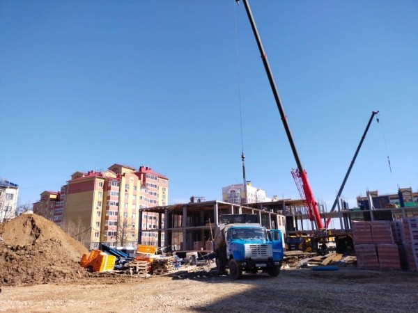 На текущий момент завершено армирование и бетонирование колонн, стен и перекрытий цокольного этажа, кирпичная кладка перегородок в цокольном этаже, изготовление трубопроводов для теплового узла, ведется монтаж систем канализации, отопления, электроснабжения, батарей, идет кладка стен и перегородок первого этажа, забетонировано перекрытие и колонны второго этажа.