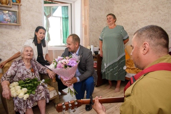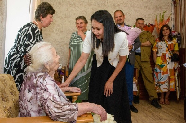 От имени Главы Марий Эл ветерана пришла поздравить Заместитель Председателя Правительства республики Ольга Бадма-Халгаева. Юрий Зайцев связался с Алевтиной Федоровной по телефону и передал ей свои пожелания.