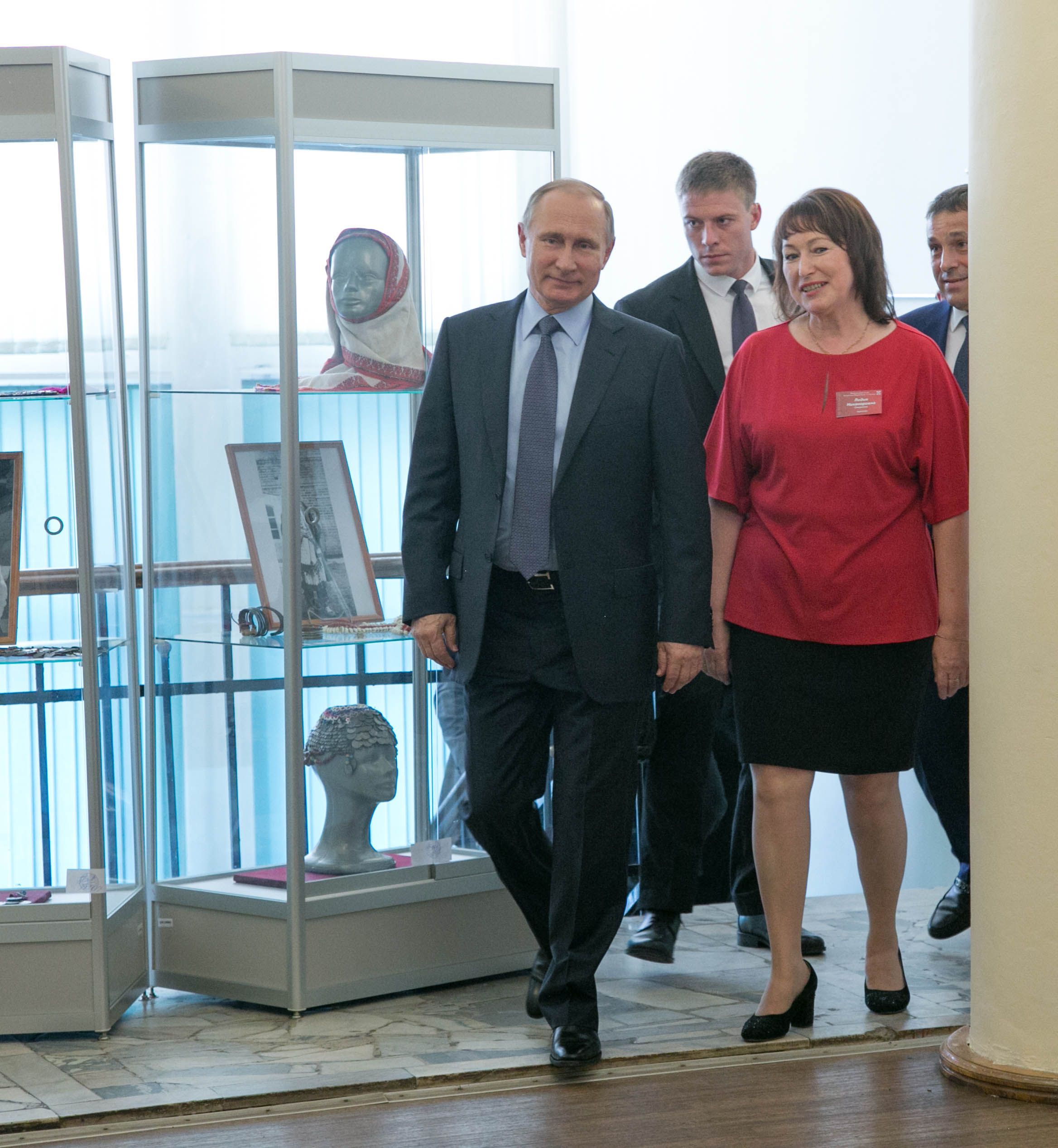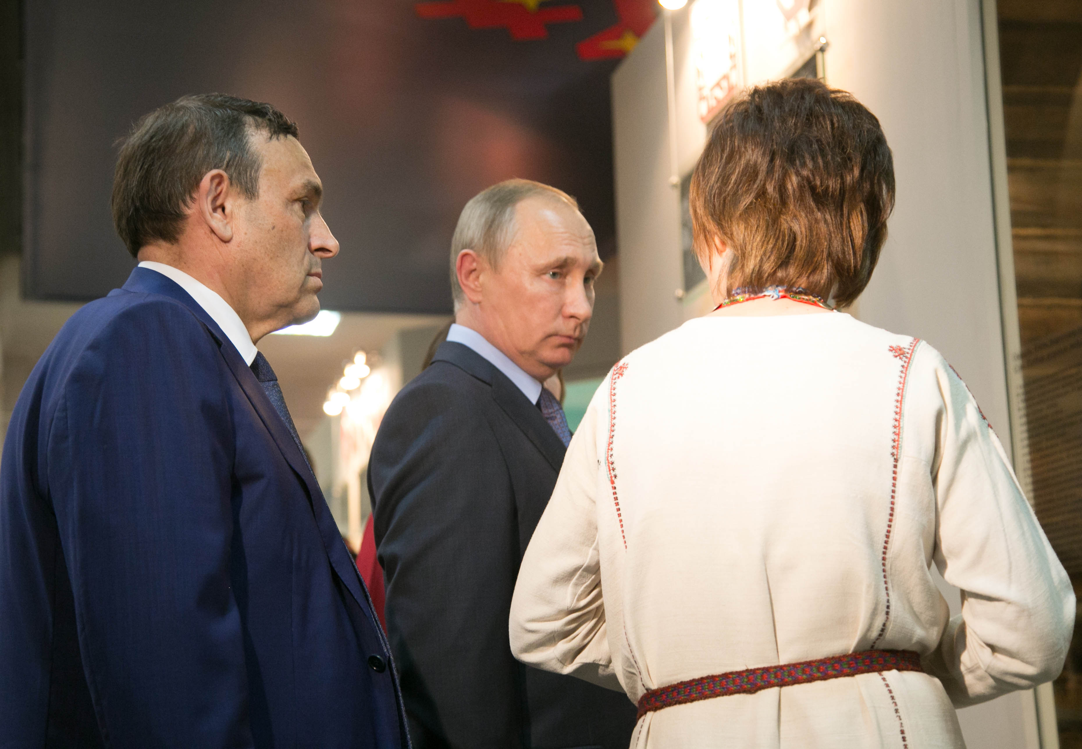 В рабочей поездке Владимира Путина сопровождал руководитель Республики Марий Эл Александр Евстифеев. Визит главы государства в Йошкар-Олу начался с культурной программы: посещения Национального музея им. Т. Евсеева – старейшего в республике и обладающего уникальной коллекцией. Почти за 100 лет работы здесь собраны богатейшие экспонаты по истории, природе, этнографии и культуре Марийского края. Основной фонд музея насчитывает более 230 тыс. предметов: материалов археологии, этнографии, документальных источников, предметов изобразительного искусства, биологических экспонатов, изделий из драгоценных металлов, камней и многое другое.