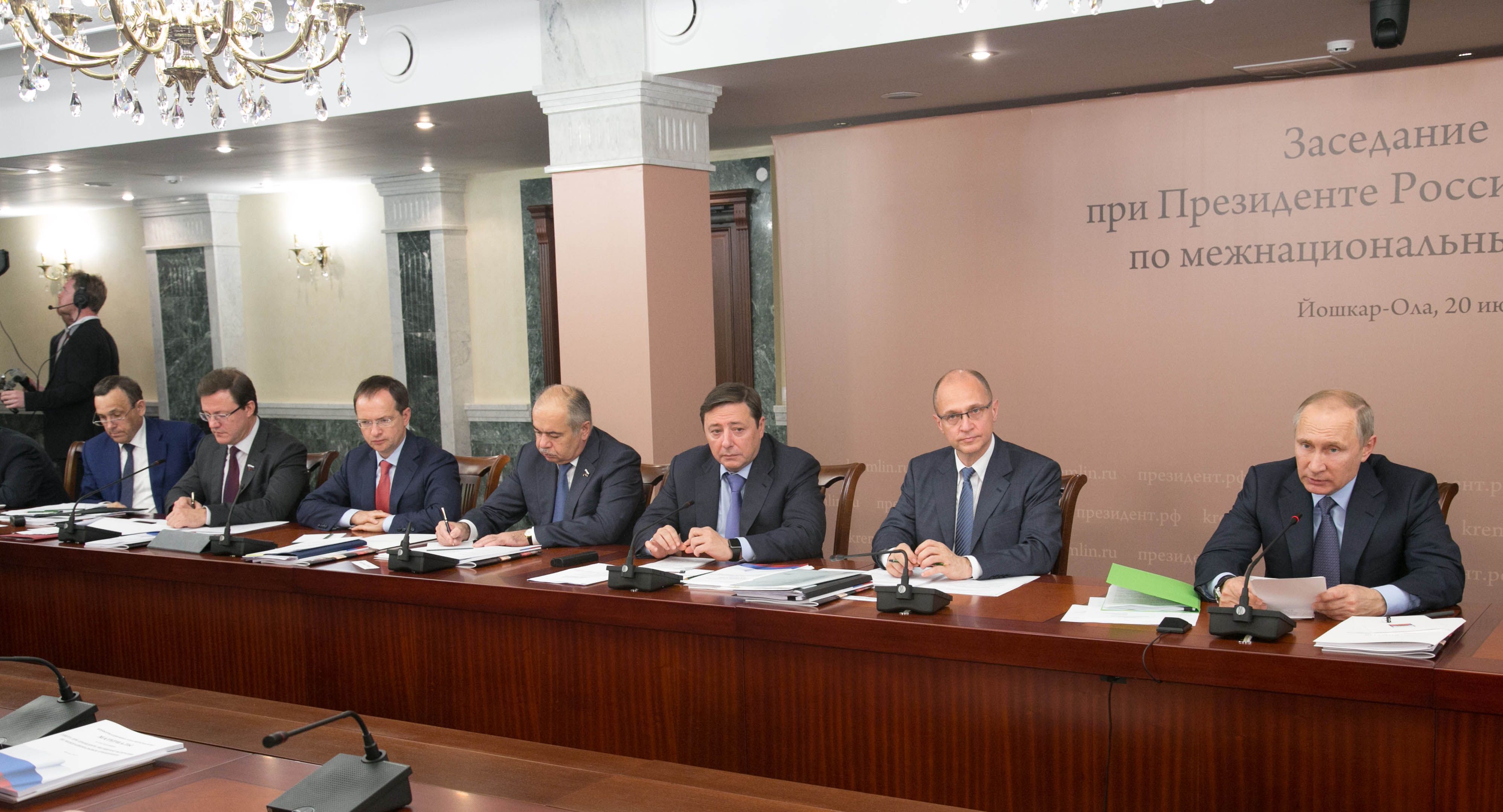 В Йошкар-Оле (Марий Эл) прошло заседание Совета при Президенте Российской Федерации по межнациональным отношениям, которое провел Президент Российской Федерации Владимир Путин. В центре внимания были актуальные вопросы реализации Стратегии государственной национальной политики России на период до 2015 года.