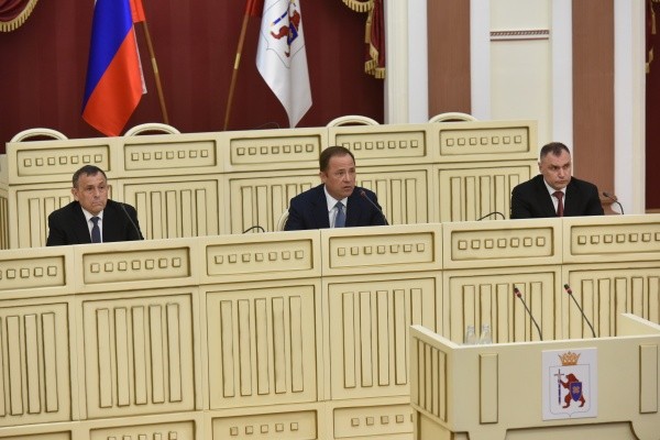 В зале собрались депутаты марийского парламента, представители органов исполнительной власти, религиозных и общественных организаций, главы городов и районов. Почетное место в президиуме занял теперь уже бывший Глава республики Александр Евстифеев.