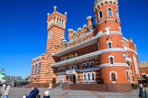 здание с динамической скульптурной композицией «Вход Господень в Иерусалим» и башня с часами, расположенное по адресу: г. Йошкар-Ола, Царьградский проспект, д. 37. В этом здании располагается ГАУК «Марий Эл Телерадио».