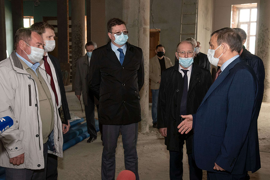 Работа во возведению храма культуры продолжается с соблюдением всех необходимых антикоронавирусных мер, в чем Глава региона убедился лично. Перед входом в здание всем участникам выездного совещания продезинфицировали руки и измерили температуру.