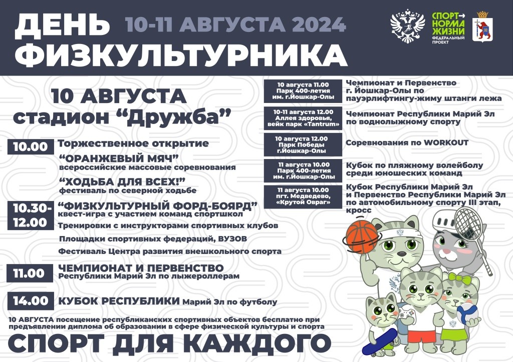 На стадионе «Дружба» в Йошкар-Оле развернутся спортивные состязания, посвящённые Дню физкультурника.