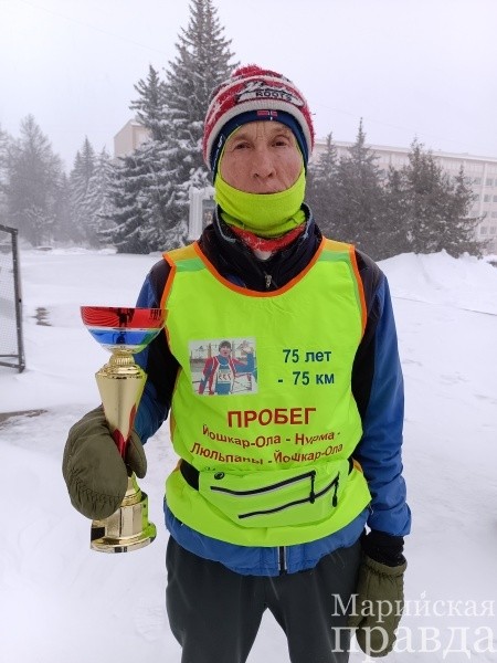 Легкоатлет - ветеран Валерий Горохов пробежал сверхмарафон в самый снежный для Марий Эл день зимы – 19 января. Преодолеть 75 километров жителю деревни Арбаны не помешали ни снег, ни ветер, а на старте и финише своего друга и земляка поддерживали ветераны спорта и ученики Люльпанской школы.