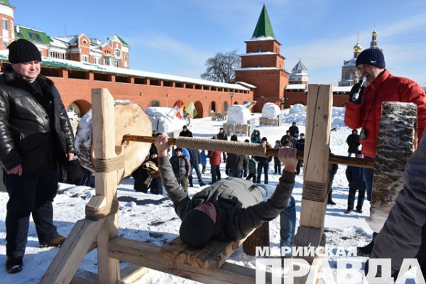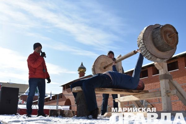 Почти полсотни молодых людей почувствовали себя богатырями на былинной забаве «Богатырский жим», которую в прошлые выходные организовал клуб исторической реконструкции «Мидгард» на территории Царевококшайского Кремля. Каждый из них поднимал штангу весом 60 кг либо 80 кг, изготовленную из ели. По условиям «былинного» состязания, победителем становился тот, кто выполнял большее число подъемов. Все происходило на глазах публики под счет ведущего – тренера, председателя Федерации пауэрлифтинга Марий Эл Юрия Кудрявцева.