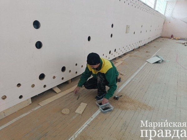 Кроме этого сейчас во Дворце спорта идет ремонт спортивных залов за счет дополнительных средств в размере 3,3 миллиона рублей, выделенных Главой Марий Эл Юрием Зайцевым. Решение принято после осмотра руководителем региона Дворца спорта. Сейчас в боксерском зале выполнены косметический ремонт, замена покрытия пола. В борцовском – работы еще продолжаются. В большом игровом зале выполнена стяжка пола, далее он будет выровнен и покрашен. Также там планируется покрасить стены.