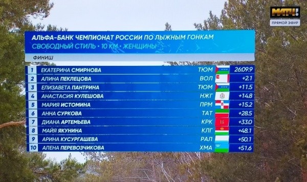 Наша землячка мощно стартовала и обеспечила отрыв в восемь секунд от соперниц на первых километрах. К середине дистанции спортсменка сборной России удвоила преимущество. На втором отрезке разрыв стал уменьшаться, но Смирнова сумела сохранить позицию.