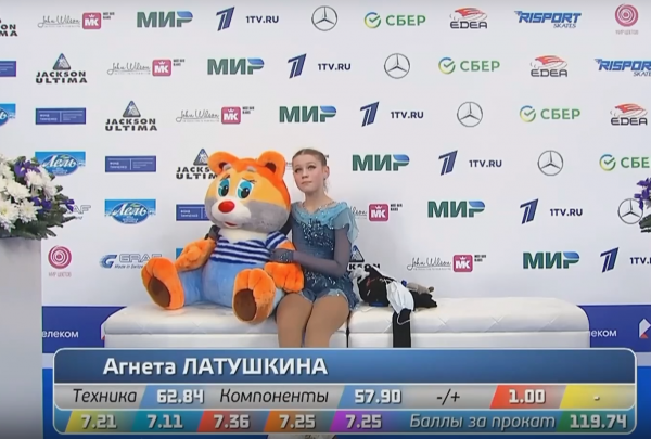 Вчера в короткой программе йошкаролинка набрала 62,92 балла, сегодня в произвольной – 119,74.
