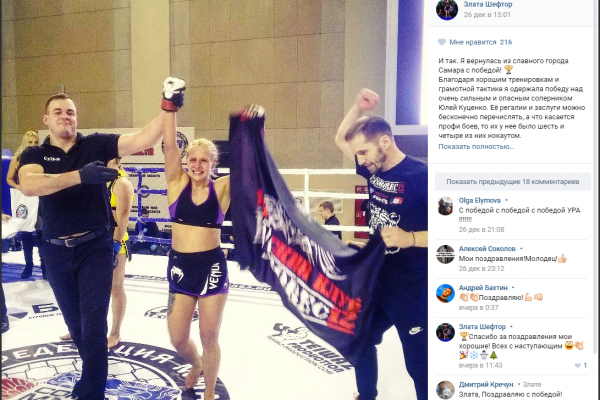 Мужчин на ринге поддержала боец Злата Шефтор. В рамках турнира «Волжская легенда-7» там же в Самаре она встречалась с дебютанткой Юлией Куценко из Тольятти, у которой, впрочем, ранее была победа на Кубке мира по кикбоксингу, а также титул чемпионки СНГ в профессиональном боксе. Йошкаролинка взяла верх, написав в социальных сетях о четвертой в 2016 году своей победе в ММА в четырех боях.