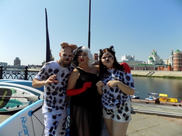 Меня же заинтересовала Круэлла Де Виль со своими далматинцами, с которой я и решила познакомиться и пообщаться о сапсёрфинге. В жизни прекрасную жительницу Марий Эл зовут Дина Левальдэр.