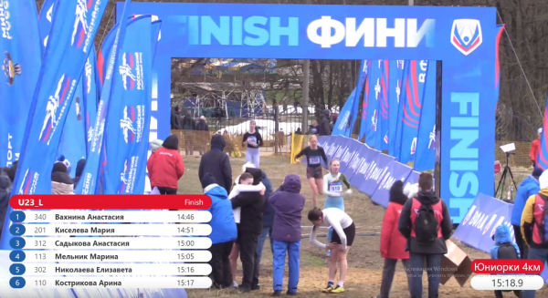 Девушки до 23 лет. 1. Анастасия Вахнина (Тульская область) - 14:46. 2. Мария Киселева (Марий Эл) - 14:51. 3. Анастасия Садыкова (Челябинская область) - 15:00.