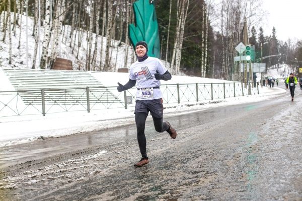 - Сама по себе трасса проходит полностью по асфальтовому покрытию, и за исключением крюка на старте к берегу Ладожского озера, не имеет каких-либо резких поворотов. Одним словом — прямая, - написал Никита. - Из развлечений помимо пунктов питания и снежной каши на дороге — несколько довольно крутых подъемов и парочка неприятных «тягунов». Также из приятного — группы поддержки из местных жителей, которые по традиции «дают пять» пробегающим, особо это мило выглядит с участием совсем маленьких детишек.