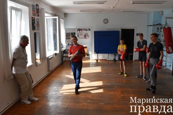 Руководитель спорткомплекса Александр Сергеев и руководитель отдела спорта Медведевской администрации Ибрагим Сайфуллин провели для гостей экскурсию, посетили с ними тренировки по мини-футболу, боксу и художественной гимнастике, представили галерею спортивной славы района в лицах.