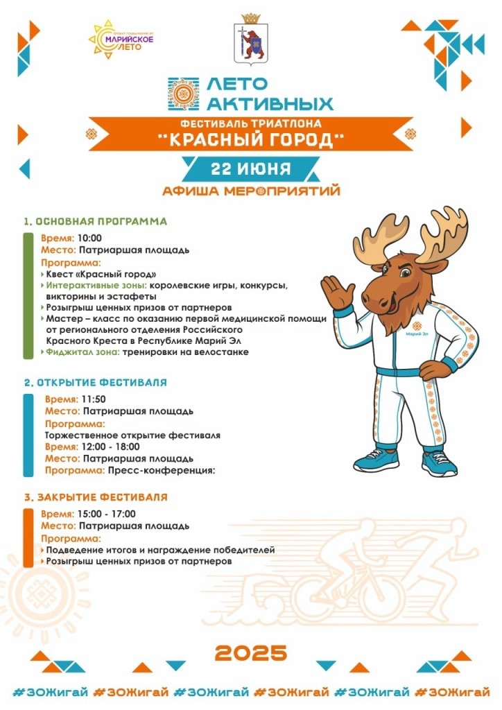 22 июня в Йошкар-Оле пройдет Фестиваль триатлона «Красный город». Центр спортивной подготовки опубликовал программу спортивного события.