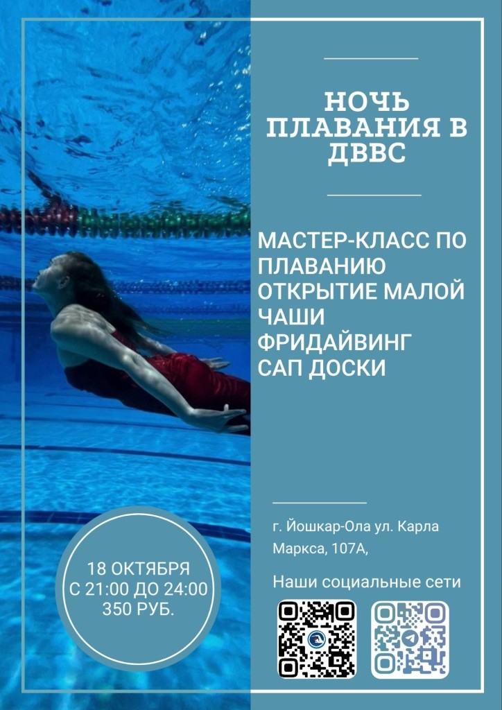 Мероприятие пройдет с 21:00 до полуночи. Во Дворце водных видов спорта специалисты проведут мастер-класс по плаванию, фридайвингу, катанию на Sup-доске. Организаторы отметили, что будет свободное плавание для всех желающих, также планируется открыть малую чашу. Записываться на Ночь плавания не нужно.