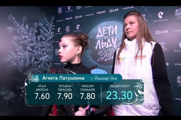 Фигуристка Агнета Латушкина из Йошкар-Олы заняла второе место в финале всероссийского конкурса «Дети на льду. Звезды», который транслировался на пяти телеканалах. Агнета выступала с номером «Нечесть» и по итогам выступления набрала хорошую сумму баллов – 23,30, причем самый высокий балл поставила Латушкиной заслуженный тренер СССР и России, председатель жюри Татьяна Тарасова.