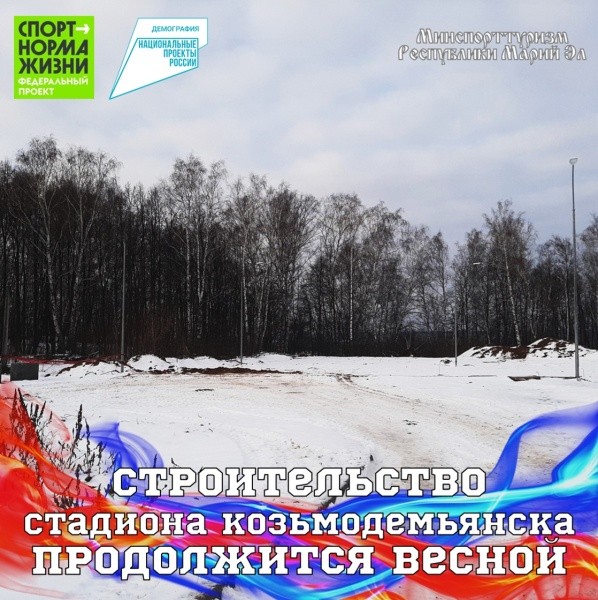 Строительство стадиона в Козьмодемьянске ведется по федеральному проекту «Спорт – норма жизни» национального проекта «Демография».