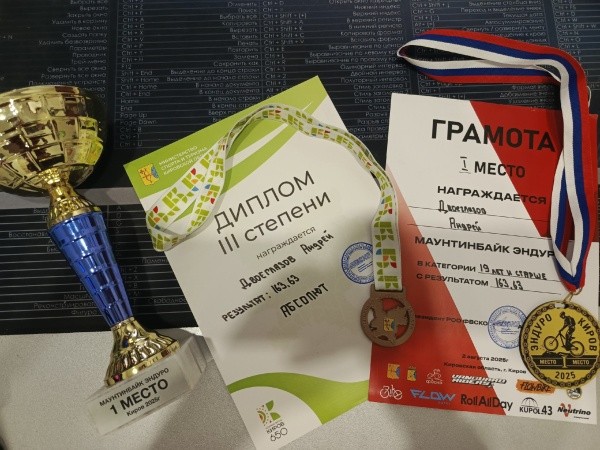 Андрей занял первое место в взрослой категории, что стало значимым достижением для него. Кроме того, он занял третье место в общем зачёте, продемонстрировав высокий уровень подготовки.