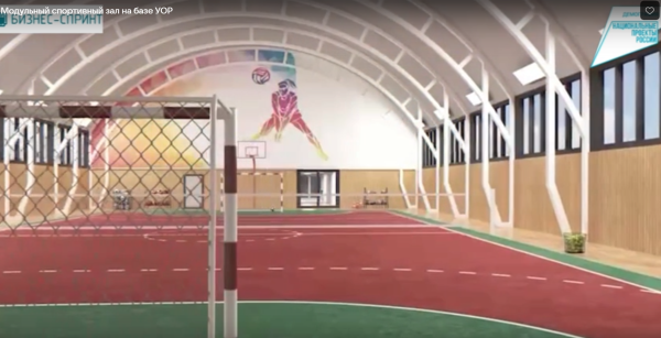 Новый модульный спортзал может быть оборудован под различные виды спорта. Его общая площадь – 1029 кв. метров, спортивная площадка – 36х18 метров. Спортивный блок оснащается спортивным и технологическим оборудованием, имеет специальное покрытие. Спортзал включает раздевалки с душевыми, тренерские, технические и иные помещения. Собирается зал из готовых комплектов конструкций.