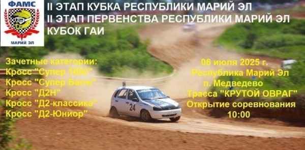 В воскресенье, 6 июля, на трассе «Крутой овраг» у посёлка Руэм Медведевского района пройдёт II этап Кубка ГАИ Республики Марий Эл.