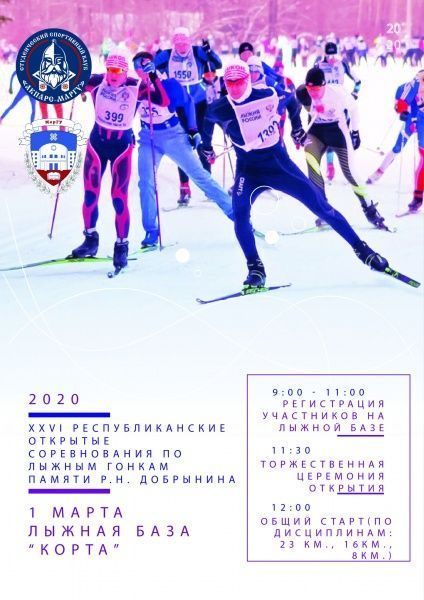 1 марта на лыжной базе «Корта» состоятся XXVI Республиканские Открытые соревнования по лыжным гонкам памяти Р.Н. Добрынина. Приглашаем принять участие!