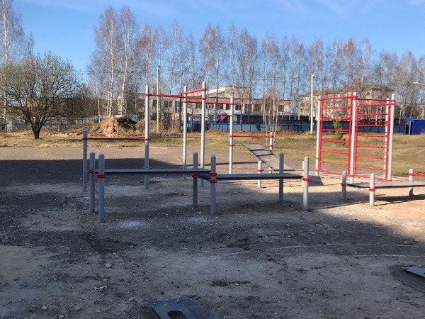 В настоящее время происходит монтаж площадки, на которой оборудуют силовые тренажёры, разноуровневые брусья, комплекс из пяти турников и рукоход «Зигзаг».