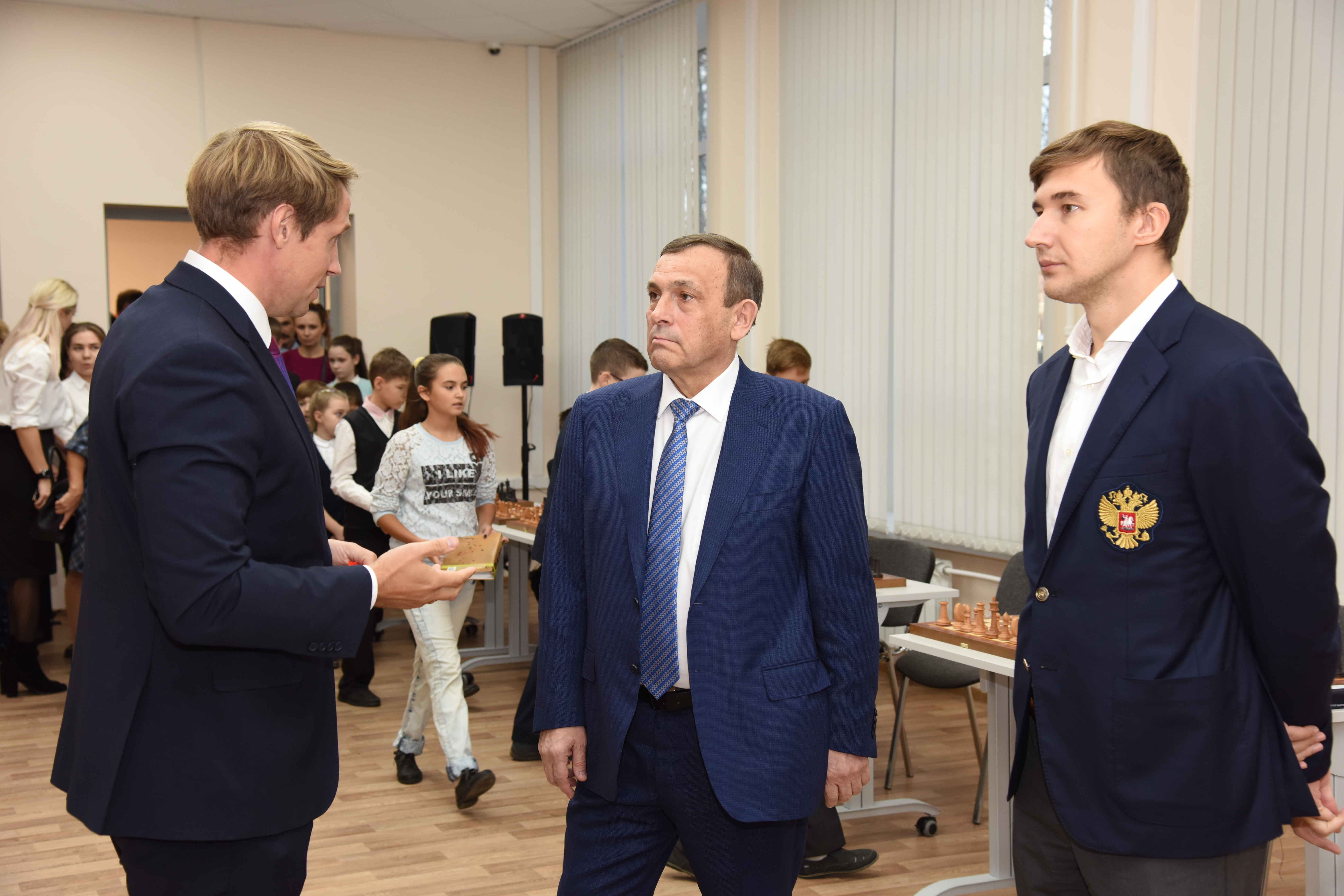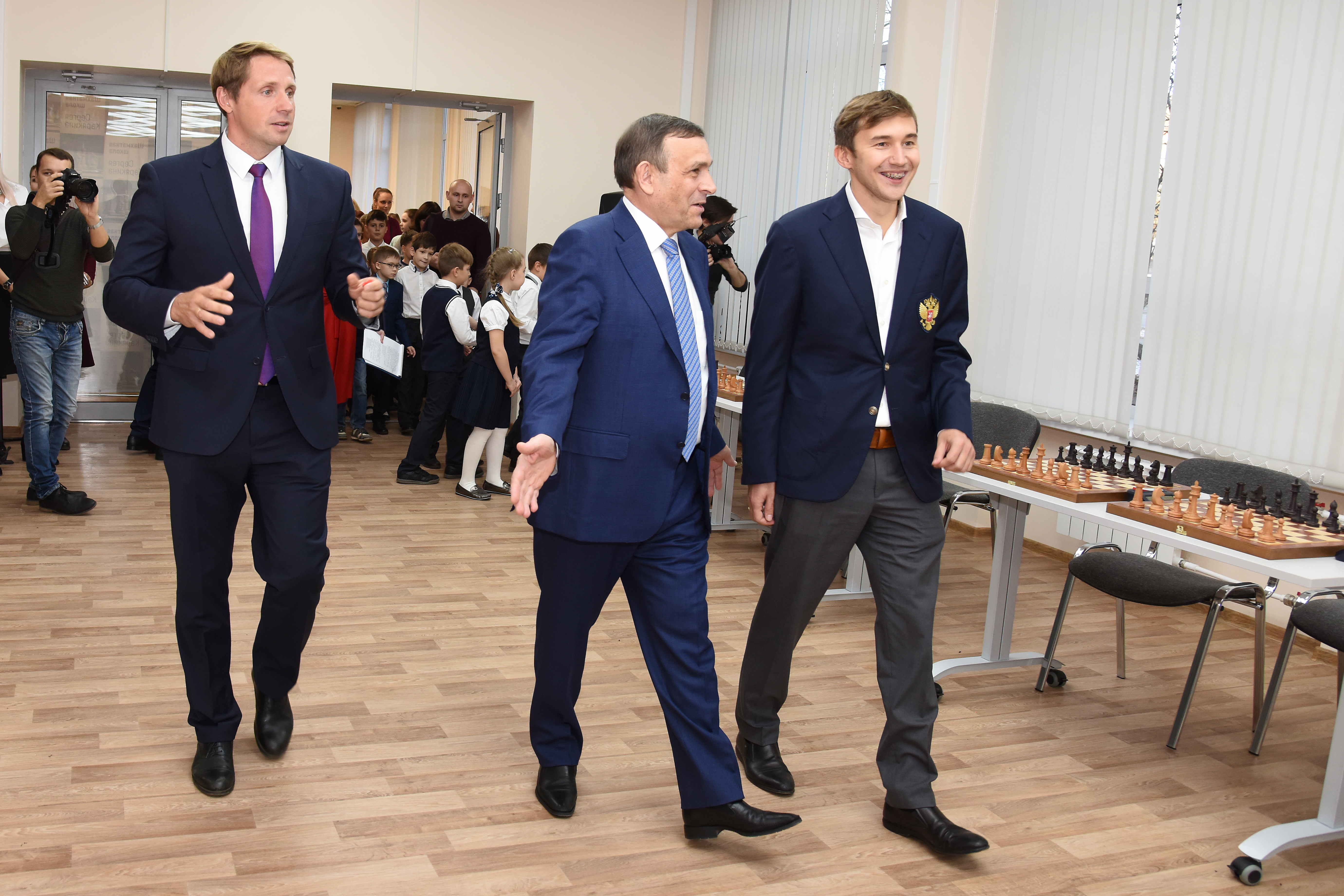 Сергей Карякин заверил журналистов, что как минимум два раз в год будет и сам приезжать в Шахматную школу, поддерживать ребят, помогать им развиваться.