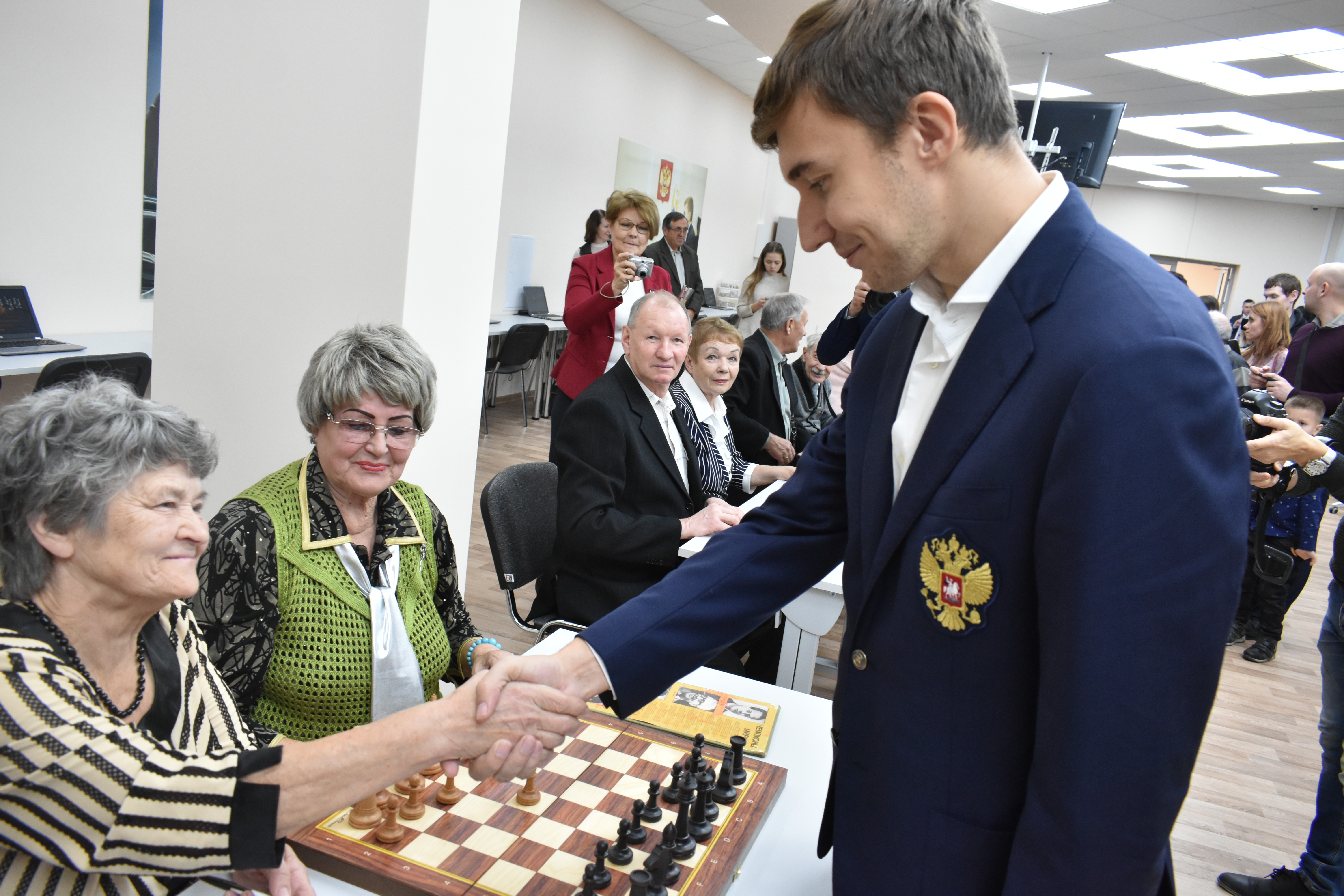 Международный гроссмейстер обратился к присутствующим детям и их родителям, а также пожилым людям, отметив, что Шахматная школа открыта для всех любителей этой игры.