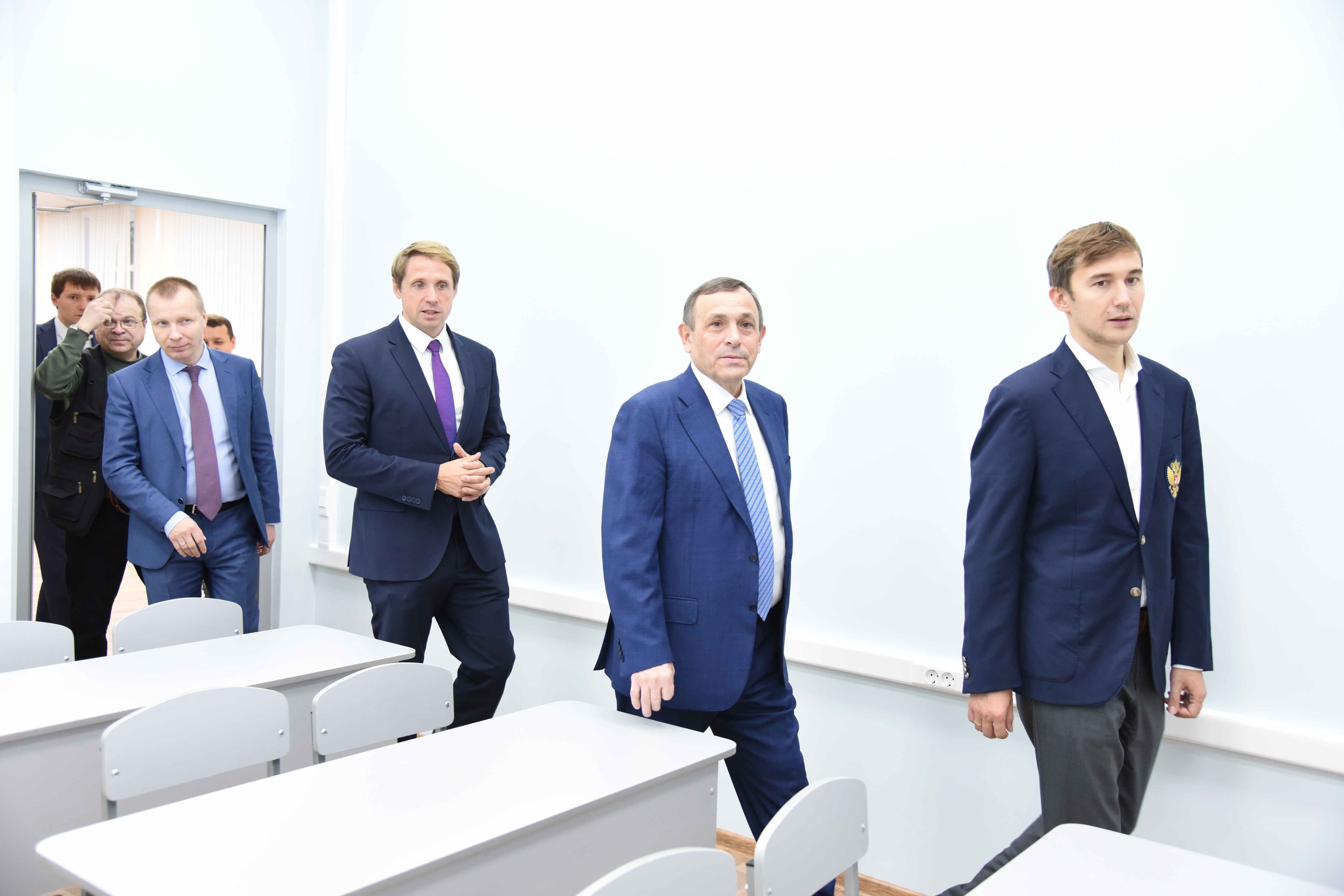 После открытия школы высокие гости осмотрели помещения, в которых будут проходить индивидуальные, групповые занятия соревнования, увидели современное мультимедийное оборудование, позволяющее гроссмейстеру давать уроки в режиме онлайн.