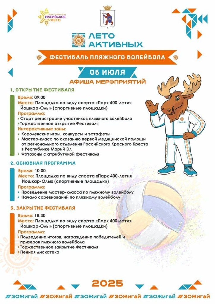 6 июля в Йошкар-Оле пройдет Фестиваль пляжного волейбола. Местом проведения станет площадка Парка 400-летия Йошкар-Олы.