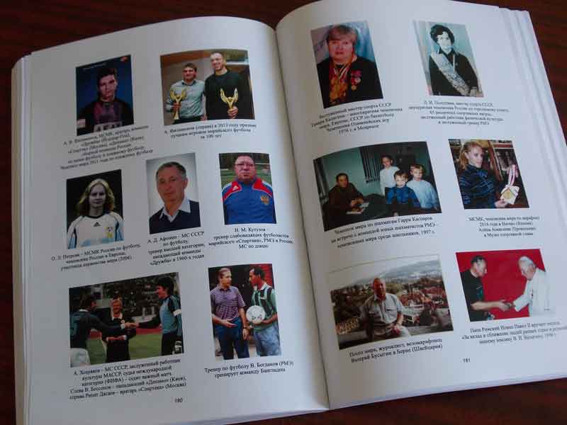 На днях сигнальный экземпляр книги автор представил нам. Объемный труд - а это две с половиной сотни страниц - посвящен достойным людям республиканского спорта. Здесь отражены спортивные успехи и судьбы как самых ярких спортсменов за 100 лет физкультурного движения в Марийской республике – Нины Селюниной, Светланы Исаковой, Зинаиды Ворониной, Валерия Исаева, Игоря Бычкова и других, так и энтузиастов спорта, заядлых его любителей, чьи имена, наверное, не столь известны, но чьи спортивные подвиги не менее ценны. Не забыты тренеры и руководители, отдавшие марийскому спорту десятилетия жизни и труда. На страницах встречаются любопытные факты и описания, как то – успехи нашего спортсмена Виктора Таланцева, попавшие в Книгу рекордов Гиннеса, или трагические эпизоды жизни Зинаиды Ворониной после завершения успешной карьеры гимнастки.