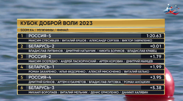Выиграла финиш четверка россиян Спесивцев – Ершов – Сергеев – Гавриленко (1:20.631). Второе место заняли гребцы из Беларуси (1:20.646).