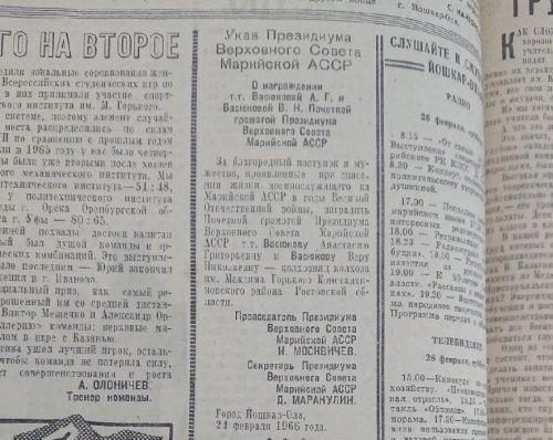 История о спасении нашего земляка вышла в "Марийской правде" в конце 1965 года. Поступок женщин не остался незамеченным со стороны руководства республики.
