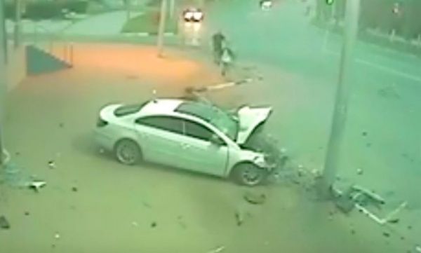 ДТП запечатлели камеры видеонаблюдения. Видно, что иномарка ехала на большой скорости со стороны Первомайского проспекта к улице Дзержинского. Девушка не справилась с управлением, не вошла в поворот и врезалась в столб.