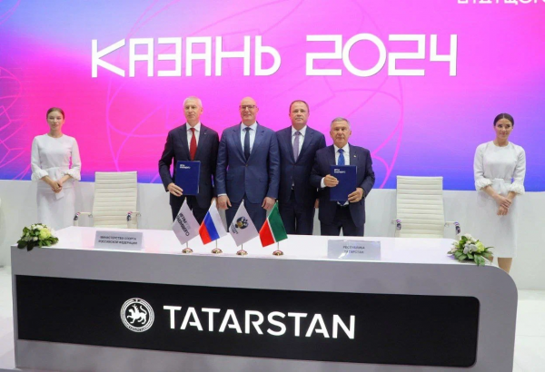 На нем состоялось подписание соглашения о проведении в Казани международного спортивного события «Игры Будущего 2024». Подписи на документе поставили министр спорта Олег Матыцин и президент Республики Татарстан Рустам Минниханов.