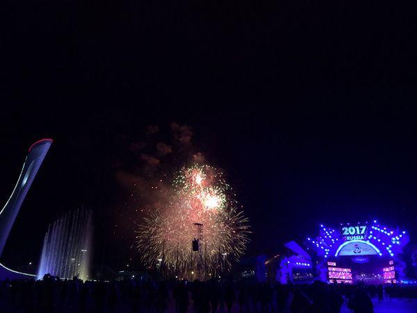Главные события открытия фестиваля проходили в ледовом дворце «Большой» на территории олимпийского парка. Понятно, что из-за большого числа участников не все смогли попасть внутрь. Поэтому многие наблюдали за церемонией открытия и выступлениями известных артистов – Димы Билана, Юлии Паршуты, американской группы «One Republic» и других исполнителей в прямом эфире на большом экране.