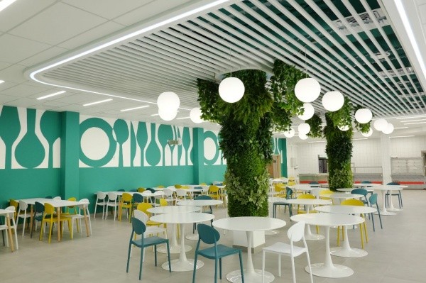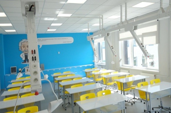 В здании оборудованы 45 учебных классов, библиотека с читальным залом, планетарий, столовая, актовый зал, мастерские. У школы есть современный физкультурно-оздоровительный комплекс со спортивными, тренажерным, хореографическим залами и бассейном. Здесь будут заниматься ребята с 5 по 11 классы – 1000 человек; все уроки проводятся в первую смену.