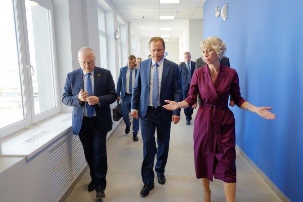 В рамках рабочей поездки в Кировскую область полпред Президента РФ в ПФО Игорь Комаров и временно исполняющий обязанности губернатора Александр Соколов осмотрели новый корпус школы №74 Кирова, построенный в рамках нацпроекта «Образование».