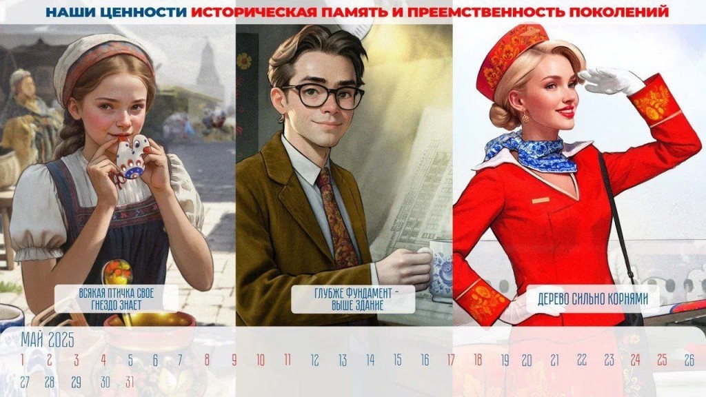 Картинки в формате календаря предлагается использовать преимущественно учителям и специалистам по работе с молодежью. В этом году авторы представят картинки в виде 17 ценностей в собирательных образах персонажей разных эпох.