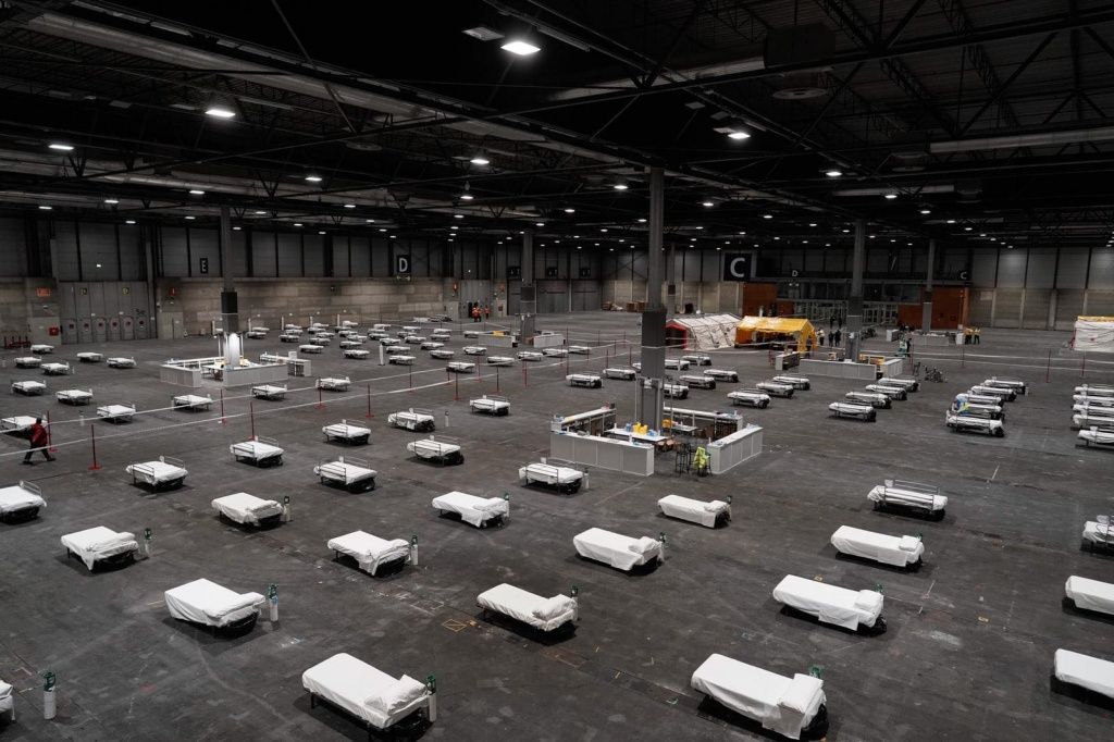 Переоборудованное под госпиталь помещение. Больницы переполнены.
