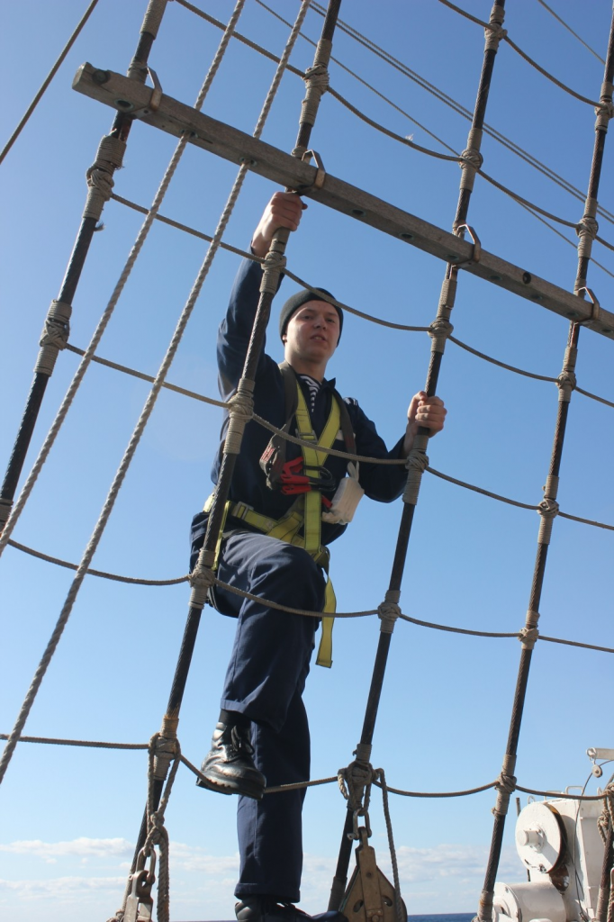 Юнг и курсантов на сегодняшний день больше всего волнует то, как они переживут шторм, и смогут ли подняться на мачту. Если шторм пока ещё даёт передышку, то боцмана ждут - не дождутся, когда практиканты привыкнут к высоте. И тут, после зачётов начались долгожданные рангоутные учения. Говорить о том, как правильно нужно подниматься на мачту (а не залазить!) - можно бесконечно. А вот подняться на высоту многоэтажного дома дано не всем. Высота мачт почти 50 метров от воды. Это этажей так - 15.